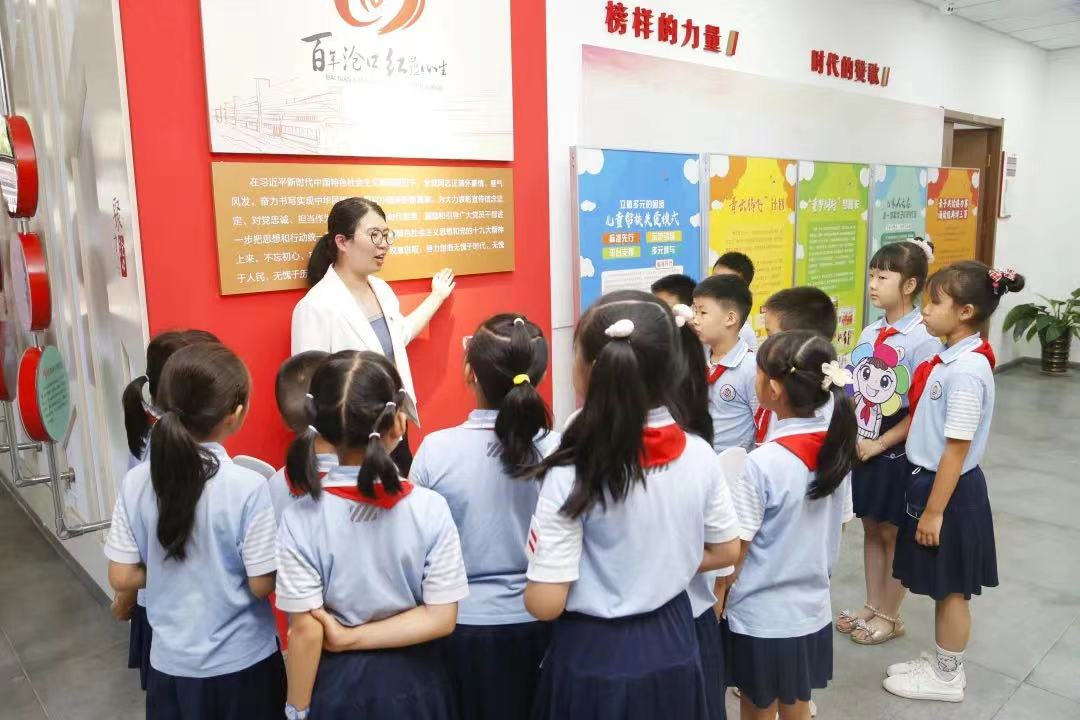 “这里是中国共产党诞生的地方,1921年中国共产党一大在此召开……”这一幕发生在李沧区宾川路小学里,小学生走在校园里的长征地图上讲述党史。