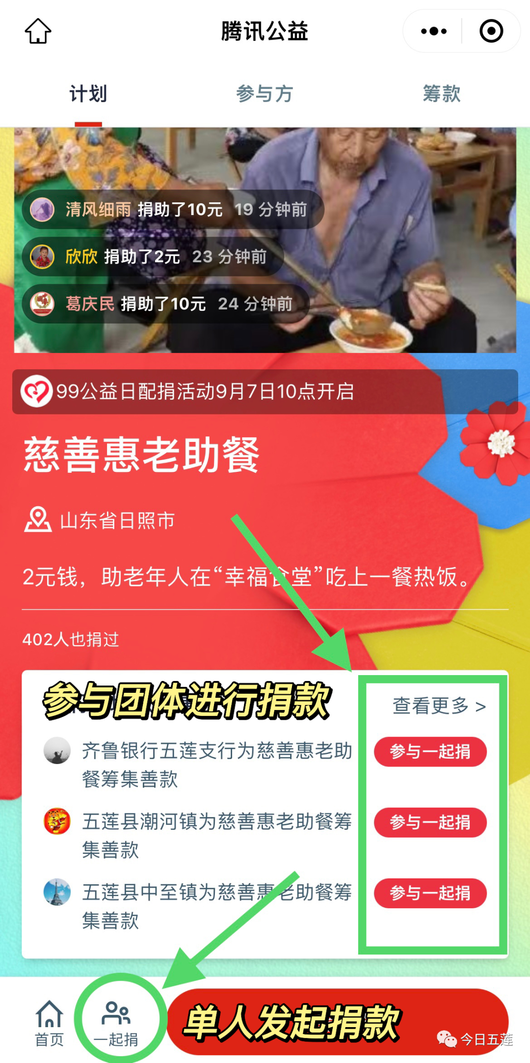 ⑥ 另外,单位和个人也可以发起“一起捐”