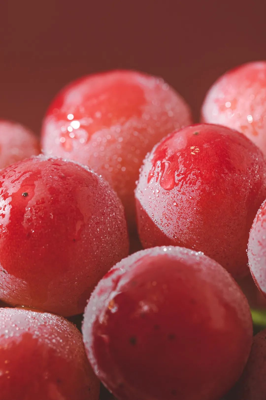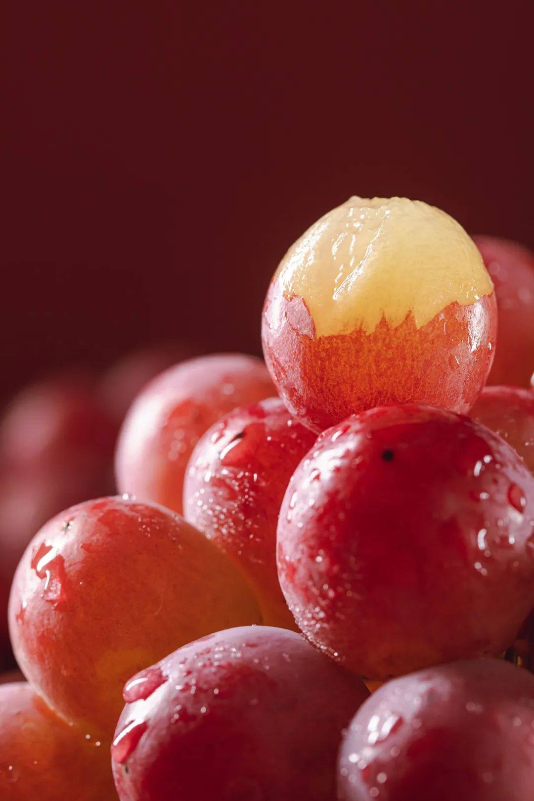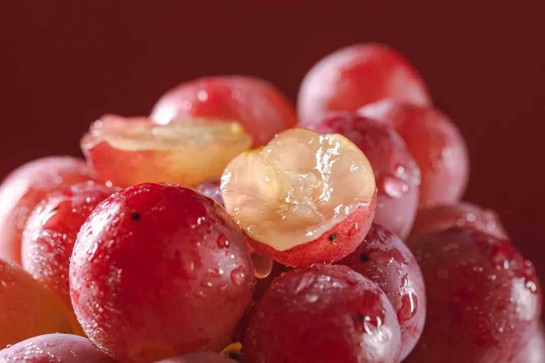 颜值高,是它给人的第一印象。圆润饱满的果实紧紧地抱成一串,晶莹剔透,鲜粉红的果皮看起来娇俏又富丽,很少有水果将两种风格诠释得如此极致。