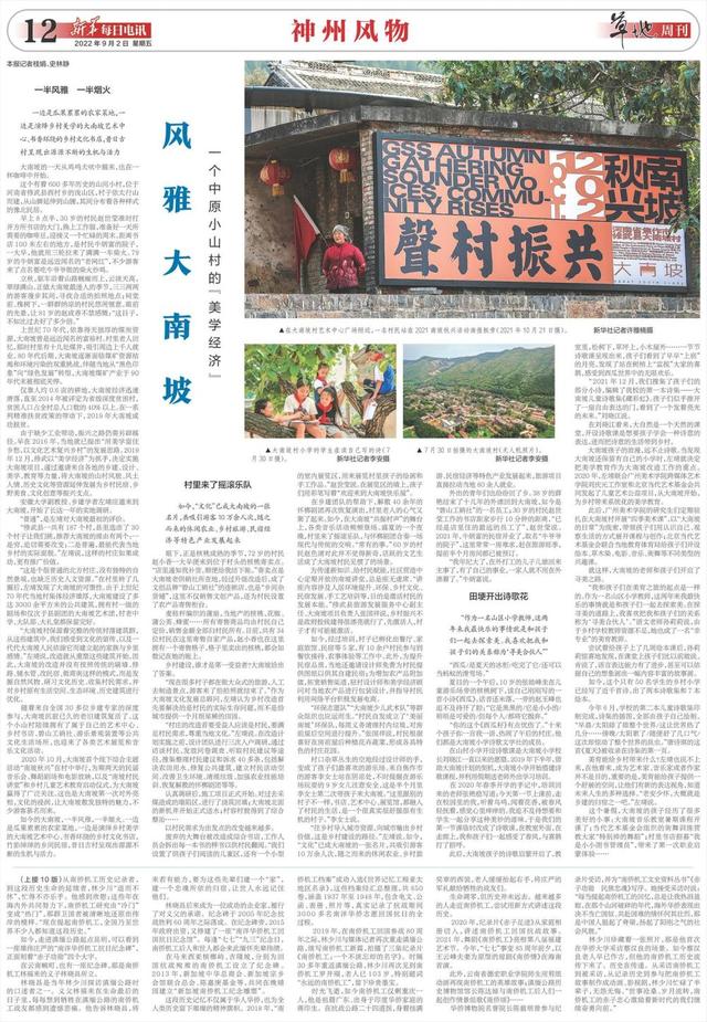 “往乡村导入城市资源,向城市输出乡村价值,这是乡村建设的路径。”左靖说。如今,“文化”已成大南坡的一张名片,共吸引游客10万余人次,随之而来的休闲农业、乡村旅游、民宿经济等特色产业发展起来,旅游项目直接拉动当地80余人就业。