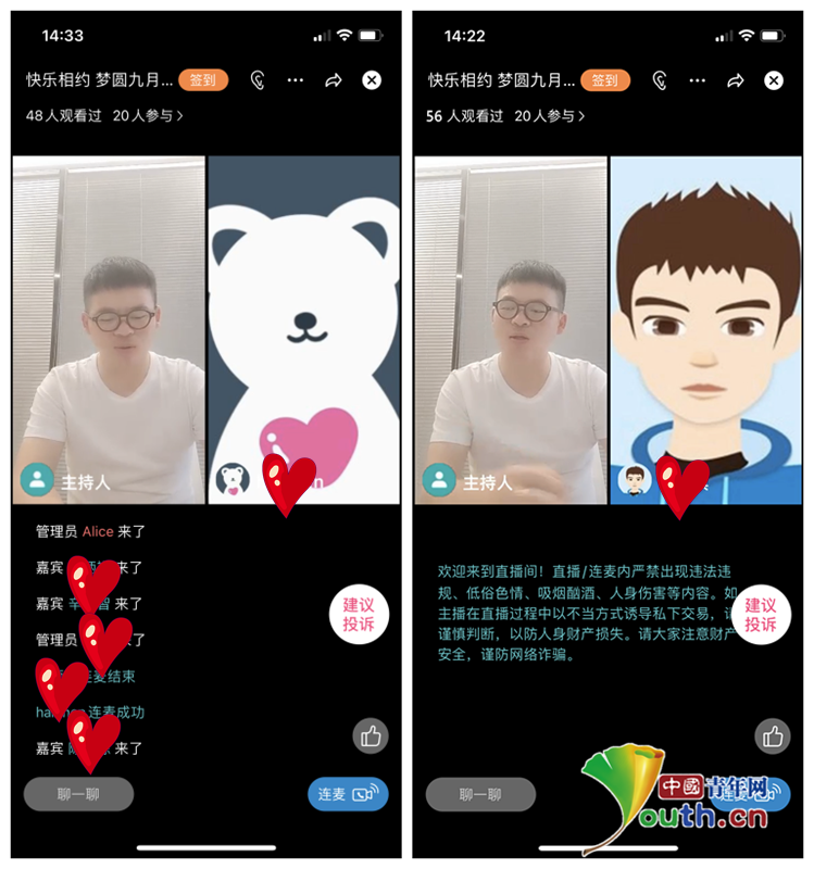 男女青年们参加线上联谊活动。