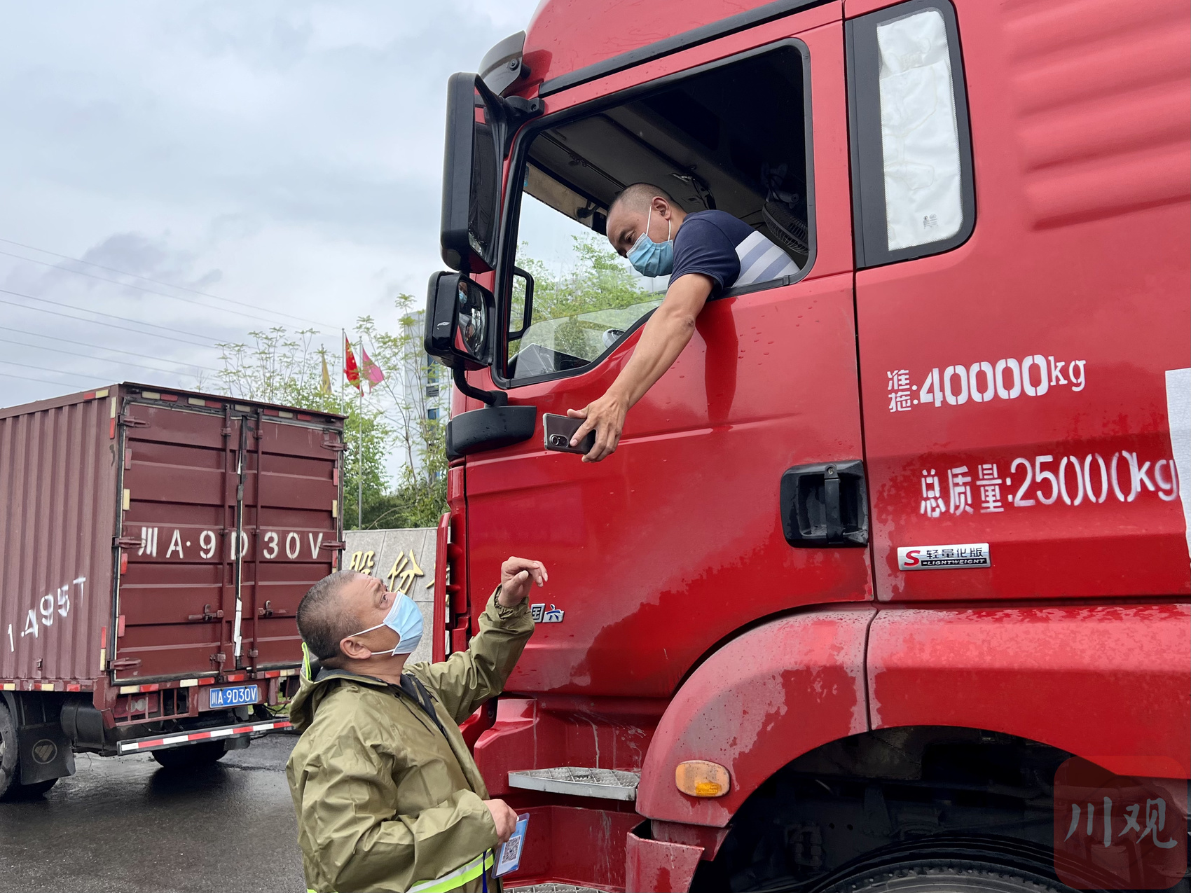 胡勇正在查验货车师傅的行程码。