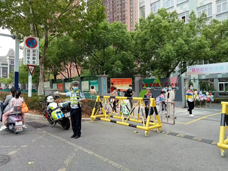 为了更好地维护校园周边道路交通秩序,全力护航学生出行安全,合肥市公安局交警支队庐阳大队协调区城管局,对周边道路交通标志标线、安全设施等进行整改完善,施划了彩色接送学生即停即走区域和学生步行通道,同时与校方、家长共同成立“护学岗”,在上放学期间维护校园周边交通秩序。全市设立交警护学岗30处,完成校园周边道路交通设施改造提升10处,开展“交通安全进校园”主题宣讲50余场次。