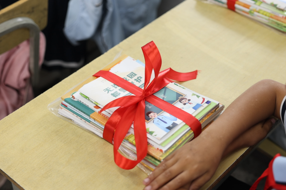 8月31日8时45分,江苏省盐城市公安局盐都分局民警来到辖区盐渎街道冈中小学,将一份扎着红丝带的原创“教材”——《开学反诈必读手册》送到老师和学生手中。
