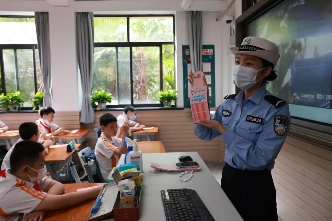 “这是新型诈骗手段,别上当!”9月1日上午,在合肥市肥西县官亭中学校园内,肥西县公安局官亭派出所民警正在与孩子们一起开展“开学第一课”安全宣传教育活动。为增强广大师生的安全意识,合肥公安机关积极组织警力走进各中小学校园开展法治宣传教育活动,推动法治副校长进校开展反电诈、防溺水等“安全第一课”宣讲810余场次。