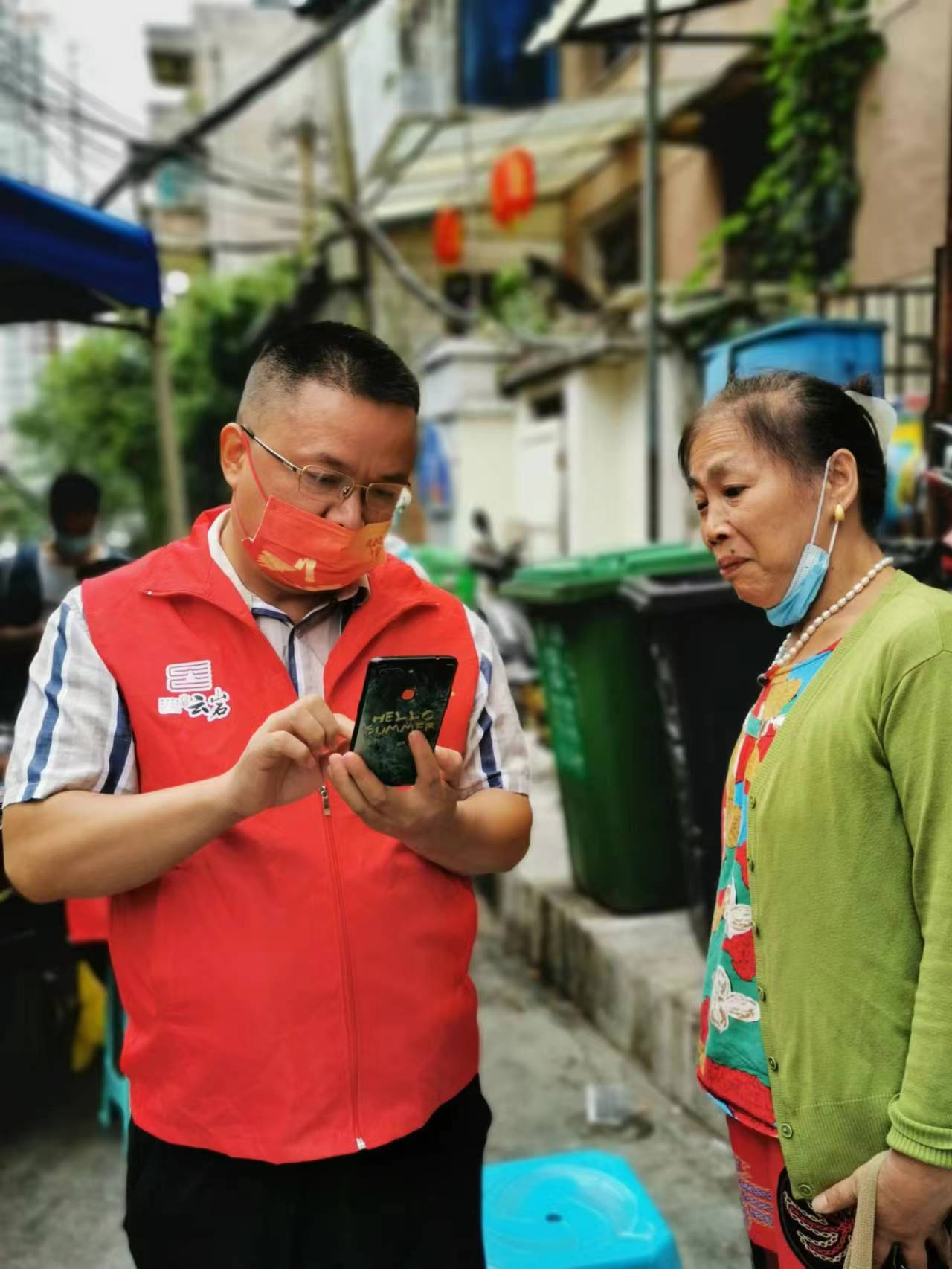 区人大代表、贵州清宇家政服务有限公司总经理骆军下沉一线,参与核酸检测信息登记、人员分流、秩序维持等工作。