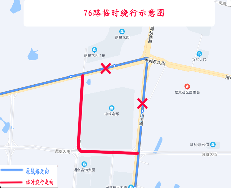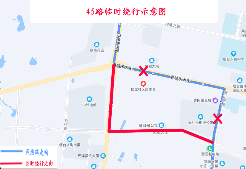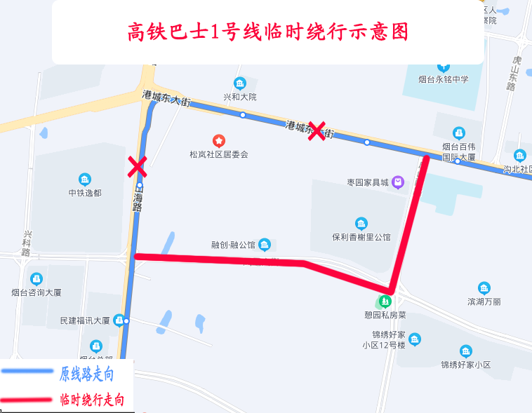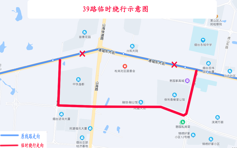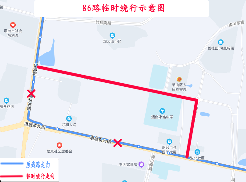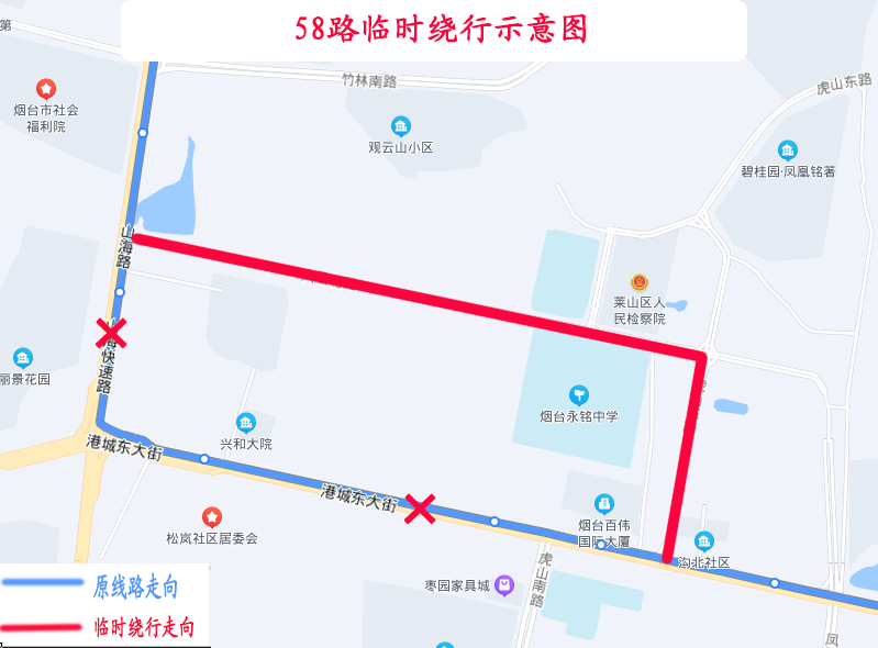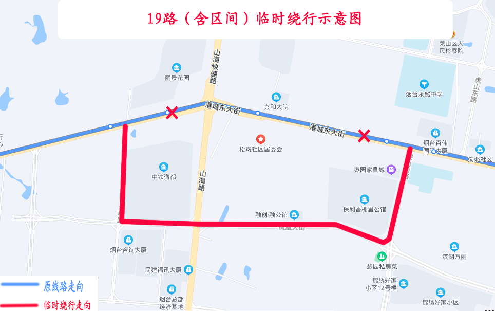 接相关部门通知,9月5日(星期一)至9月30日,对莱山区港城东大街部分路段(虎山南路至兴科路)封闭施工,道路施工期间,19路(含区间)、36路、39路、45路、58路、76路、86路、高铁巴士1号线等8条线路临时绕行;即日起对牟平区天华街部分路段封闭施工,工期约30天,道路施工期间602路临时绕行。具体方案如下: