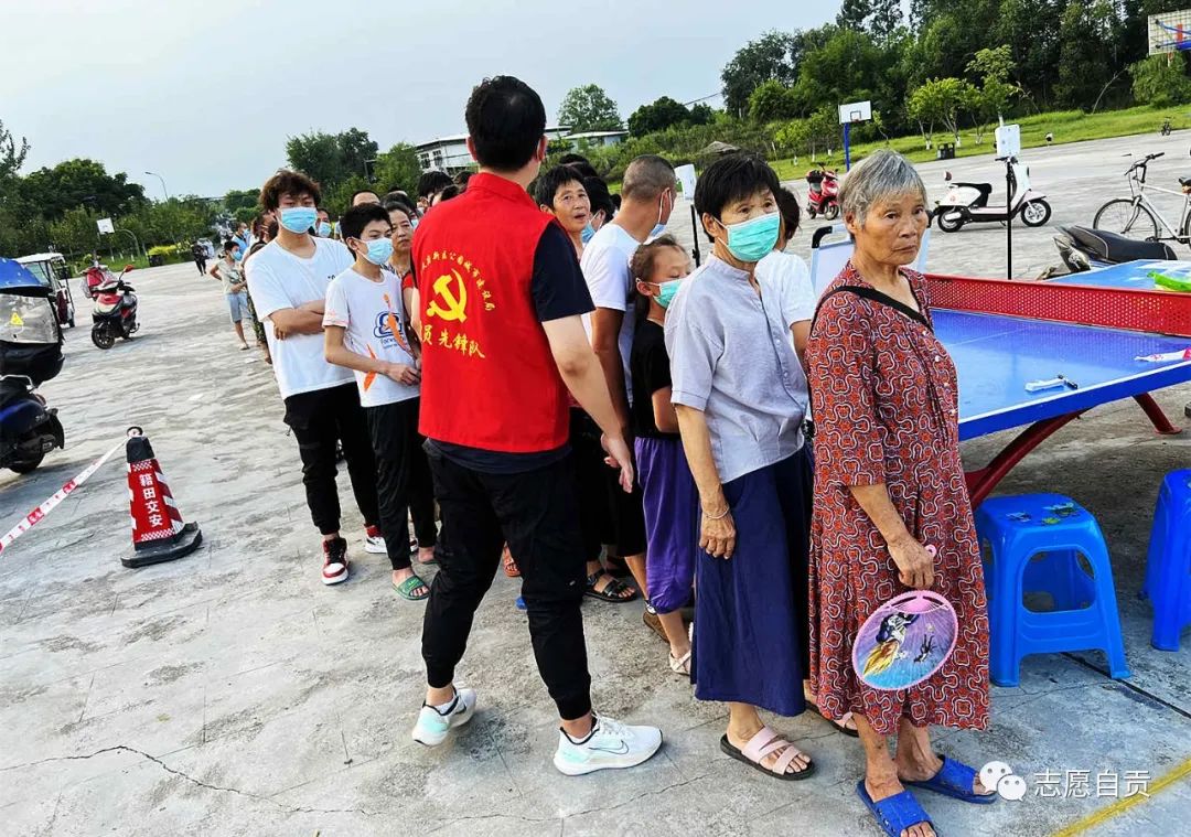 90后入党积极分子王寒,被隔离在成都天府新区,他主动申请下沉四川天府新区华阳街道一心社区南湖香麓小区,协助开展核酸检测工作,天刚亮他就身穿红马甲来到核酸检测点,帮助维护秩序,几天来在社区各个卡口都有他忙碌的身影。他的工作除了要提醒现场排队的人群保持一米距离并规范佩戴口罩,打开健康码,有序进入,还要帮助那些年纪大、行动不便的老年人进行核酸检测。