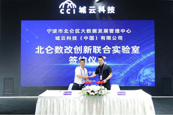 在共同见证下,北仑区大数据发展管理中心党组成员、副主任张敏与城云科技骆华涛签署协议。双方将通过创新技术应用、强化城市大数据技术赋能城市创新治理,推动北仑数字化改革。