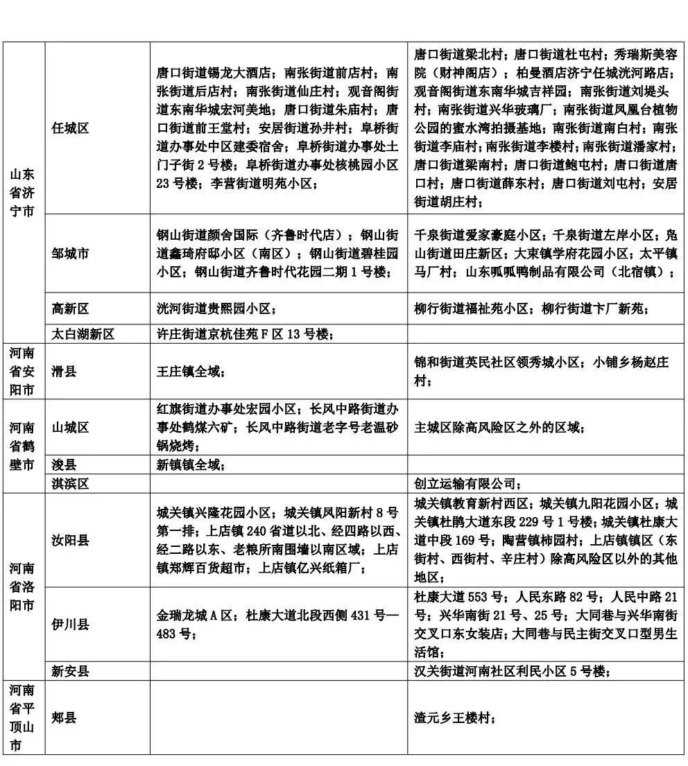 备注:中高风险区根据国务院客户端查询,尚未公布中高风险区但7天内发生社会面疫情的地区根据网络数据整理,*为参照中风险区执行地区。