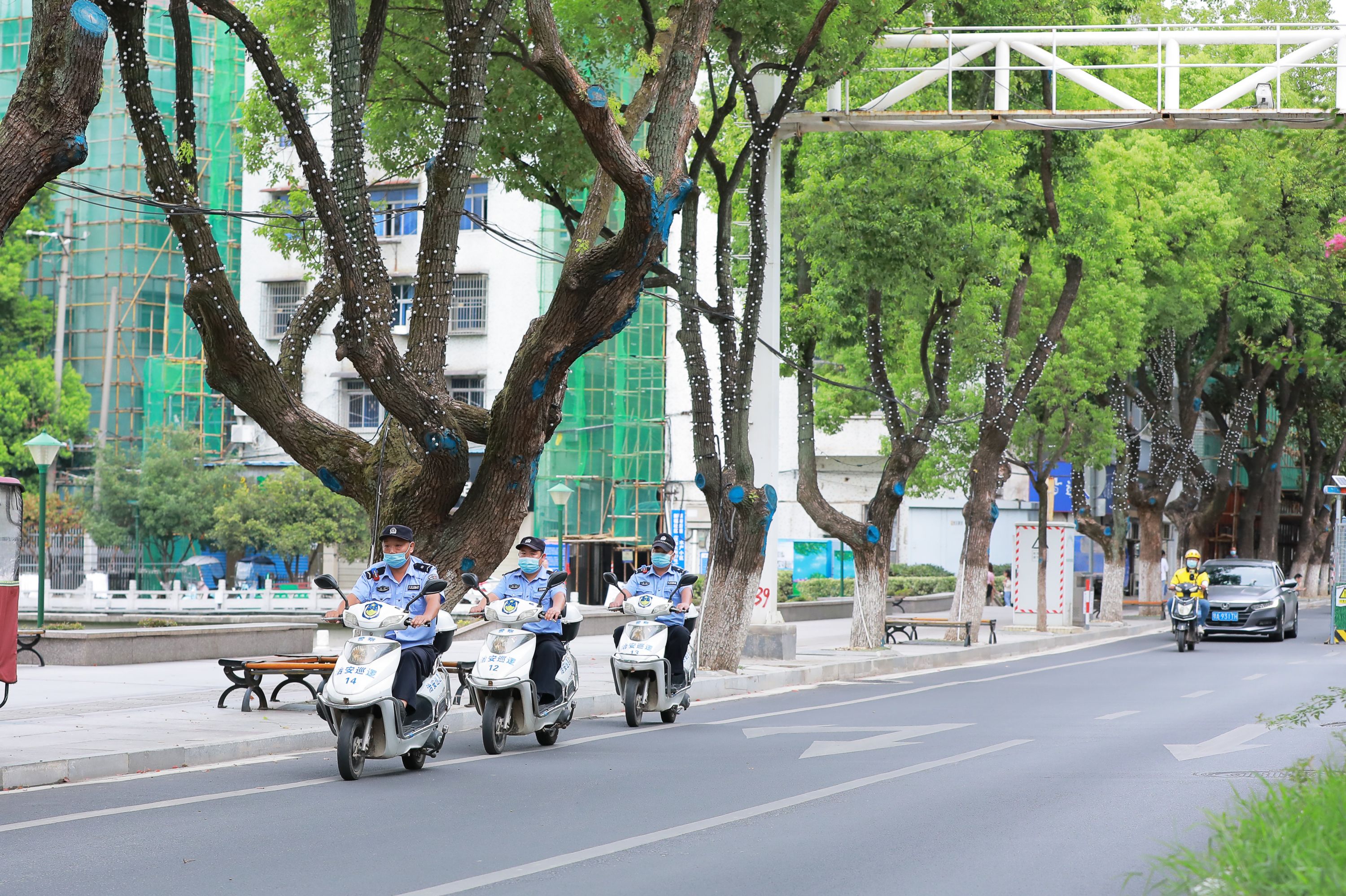蔡甸安保服务队在重点道路开展巡逻。 通讯员高雷 摄