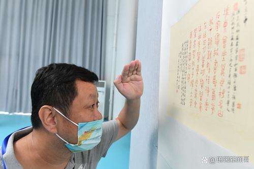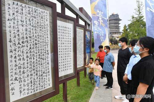 9月4日,众多市民、书法爱好者在临沂市工人文化宫、临沂书法广场各展览现场,共享书法盛宴。(廖杰 张洪国 英子 摄)