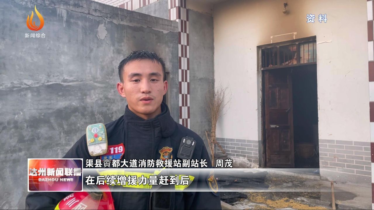 渠县賨都大道消防救援站副站长 周茂:我们赶到现场后,发现起火建筑是一栋三层楼房,它负一楼一起火,里面堆的全是柴,我们立即命令2号车铺一条干线、出两支水枪,从内部进行内攻灭火,用抢险班的排烟机进行排烟,在后续增援力量赶到后,在上面出了一支枪进行降温。