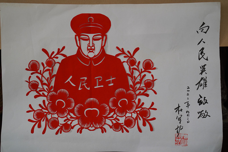 近日,兴平市民间艺术家杜军护创作出剪纸作品《人民卫士》,以自己的方式,向英勇牺牲的英雄民警陈勇致敬。