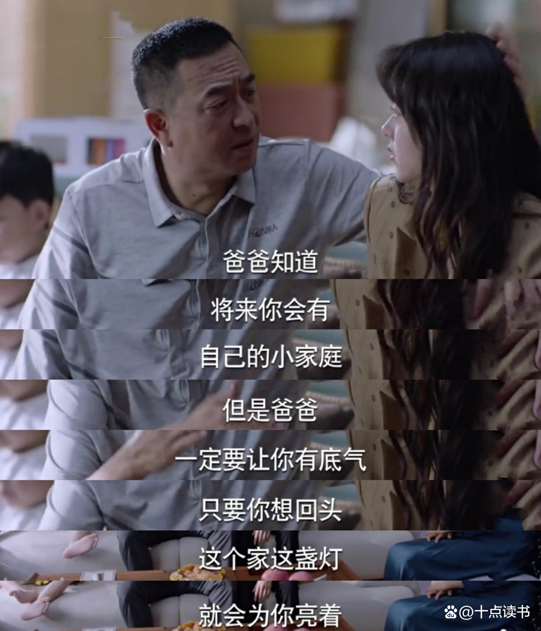“爸爸知道,将来你会有自己的小家庭,但是爸爸一定要让你有底气,只要你想回头,这个家这盏灯就会为你亮着。”