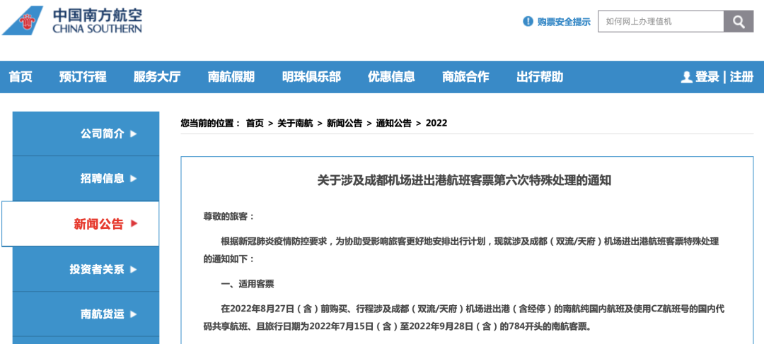 在2022年8月27日(含)前购买、行程涉及成都(双流/天府)机场进出港(含经停)的南航纯国内航班及使用CZ航班号的国内代码共享航班、且旅行日期为2022年7月15日(含)至2022年9月28日(含)的784开头的南航客票。