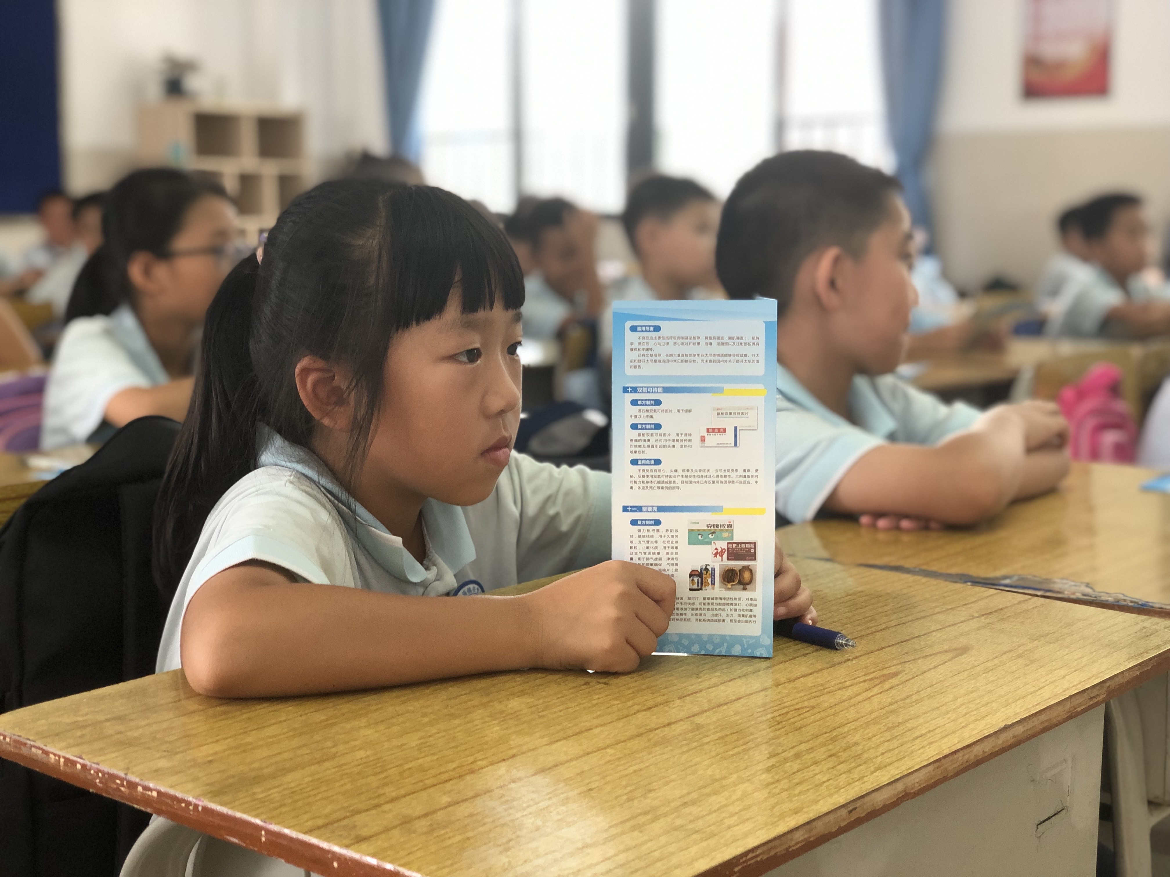 学生翻阅禁毒宣传资料