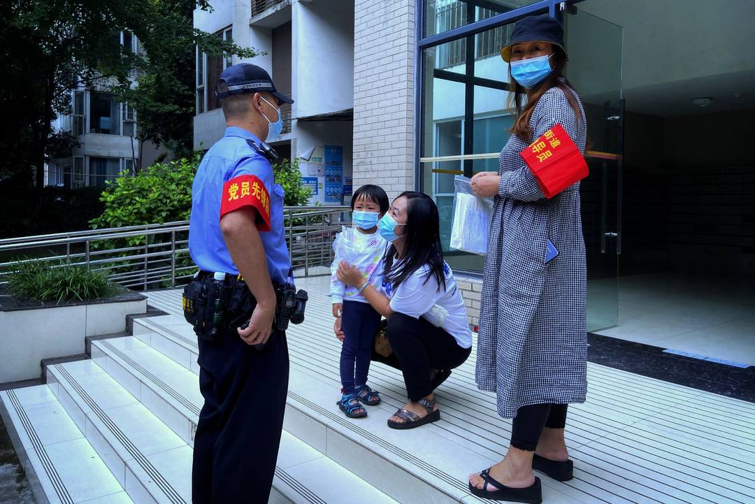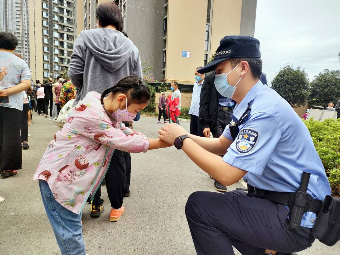 “小朋友?你叫什么名字?别怕,警察叔叔来保护你。”9月4日上午,在华阳街道家益欣城小区核酸检测点,分局治安管理支队巡警大队入警7年的辅警杨金茏在执勤时,发现一名小女孩在核酸检测的队伍旁边走边哭,身旁也没有大人相随。