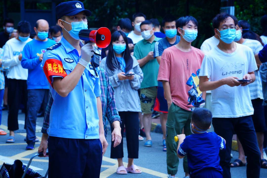 “请大家有序排队,保持一米安全距离,提前打开健康码,全程佩戴好口罩……”在华阳街道核酸检测点现场,分局治安管理支队巡警大队副大队长朱东锋拿着喊话器,沿着核酸检测队伍不断提醒着排队群众,在他的右手胳膊上,“党员先锋队”的袖标温暖而夺目。