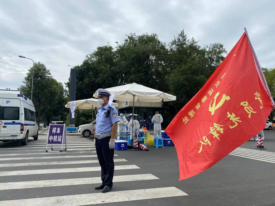 送你一朵小红花 给护航核酸检测的“公安蓝”
