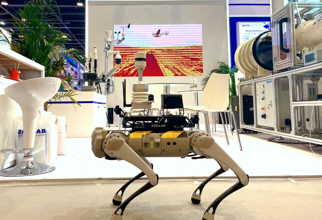 气候变化与双碳经济专题展区展出的一只机械狗,能够代替人工在恶劣环境中作业、采集气象要素。受访者供图