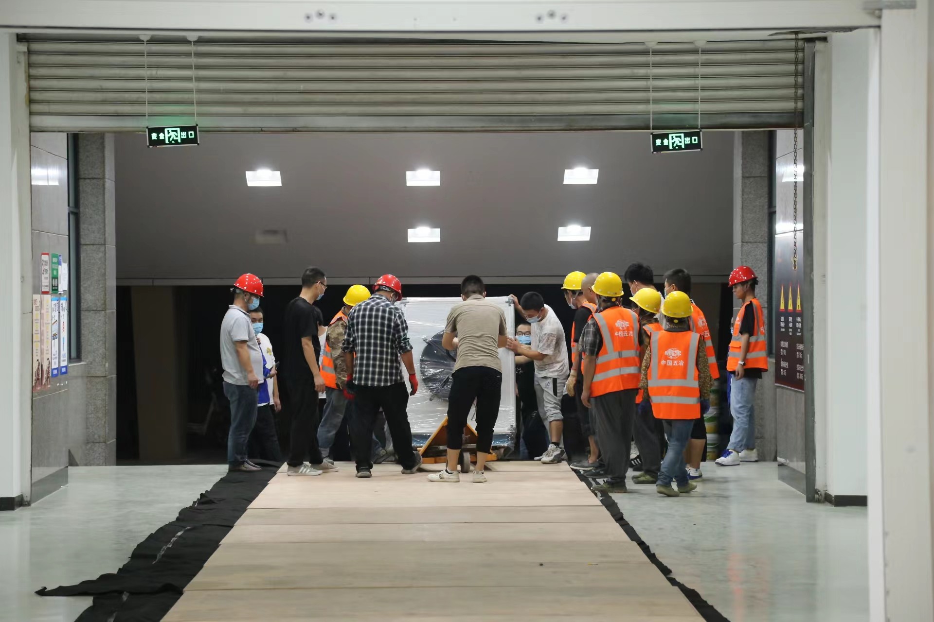 今天中午,记者来到在天府新区西博城货运轮转区,这里是上海援建成都气膜方舱实验室选址,总占地面积为12000平米。记者在现场看到,两个气膜方舱实验室已经搭建完成,正在进行设备搬入和安装工作。除实验室外,物资储备区、医废区、更衣区、办公区等多个功能区域也已筹备就绪。