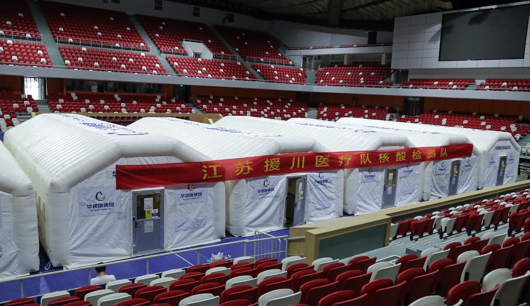 据江苏援川核酸检测队联络员李博介绍,今天下午气膜实验室已在省体育馆完成搭建,医疗队将继续进行设备安装调试工作,预计明天上午进行试运行和验收,下午正式接收样本。