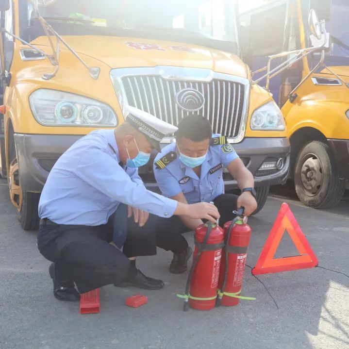 宣传结束后,民警对校车车况和安全设施进行检查,仔细检查了校车标识、医药箱、安全锤、安全带、灭火器、车轮纹路等,并要求校车驾驶人要做到警钟长鸣、将安全牢记于心,切实提高文明交通安全意识,筑牢校车安全防线,助力师生安全出行。