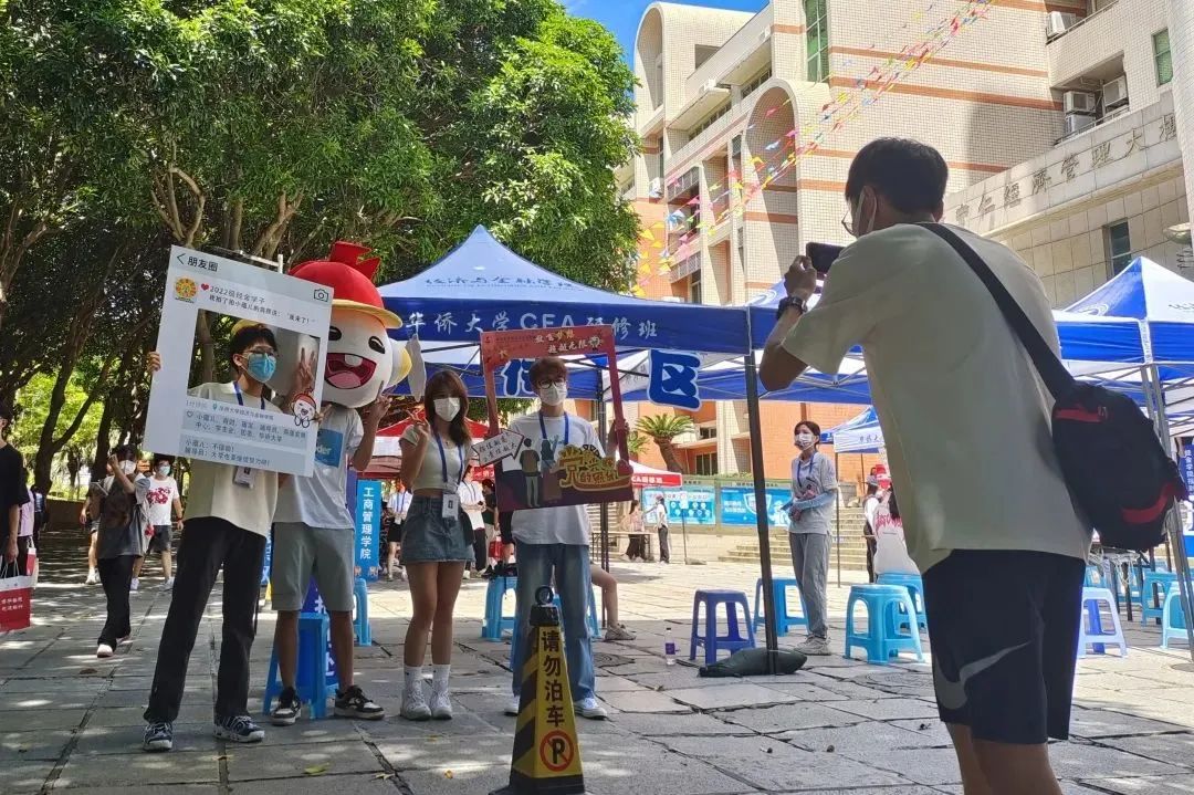 此外,信息学院将所有新生的姓名加以组合设计做成“你好!信青年!”的形状;新闻与传播学院为新生准备印有院训的矿泉水并设计红毯仪式;华文学院将防诈骗标语印于奶茶杯并赠送给新生;文学院为新生准备了一场书法现场体验;土木与工程学院准备了定制可乐,上面写有每一位新生的姓名……