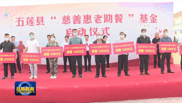 直播日照9月5日讯 为弘扬扶贫济困美德,凝聚社会爱心力量,9月5日,五莲县举行“慈善惠老助餐基金”启动仪式,县级领导带头捐赠,18家爱心企业代表现场捐赠39.5万元,设立“慈善惠老助餐基金”,为有需求的老年人每天提供两元午餐补助,更好凝聚社会爱心,募集慈善资金,助力“锦绣五莲•老有善养”养老服务品牌建设。