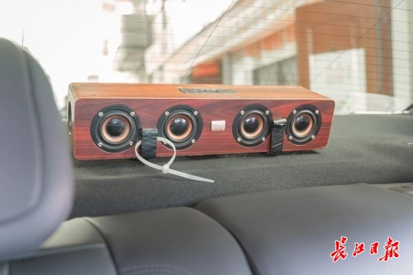 因为自己爱听歌,陈万青在车上装了音箱。 记者雷衎 摄