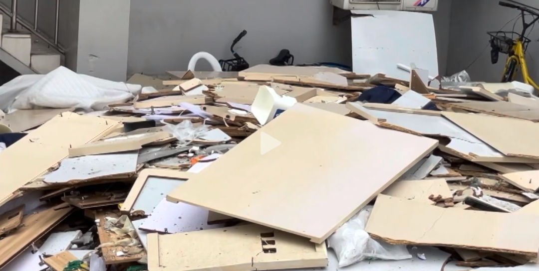 居民王女士——那个玻璃的声音,带着木头的声音(砸下来),真的像爆炸一样,嚓嚓的声音 。