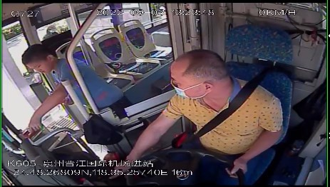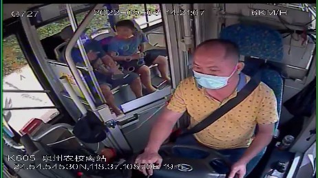9月3日13:24左右,泉州公交K605路驾驶员尤朱茂驾驶闽CYG727公交车在晋江国际机场准备发班时,一位约十来岁的小男孩独自上了车,尤师傅看其没有大人陪同,于是多次询问确认他要到哪。小男孩只说记得那里有很多公交车,有村庄,可能是客运中心站。尤师傅开始担心孩子是不是坐错车了,一路特别留意他。
