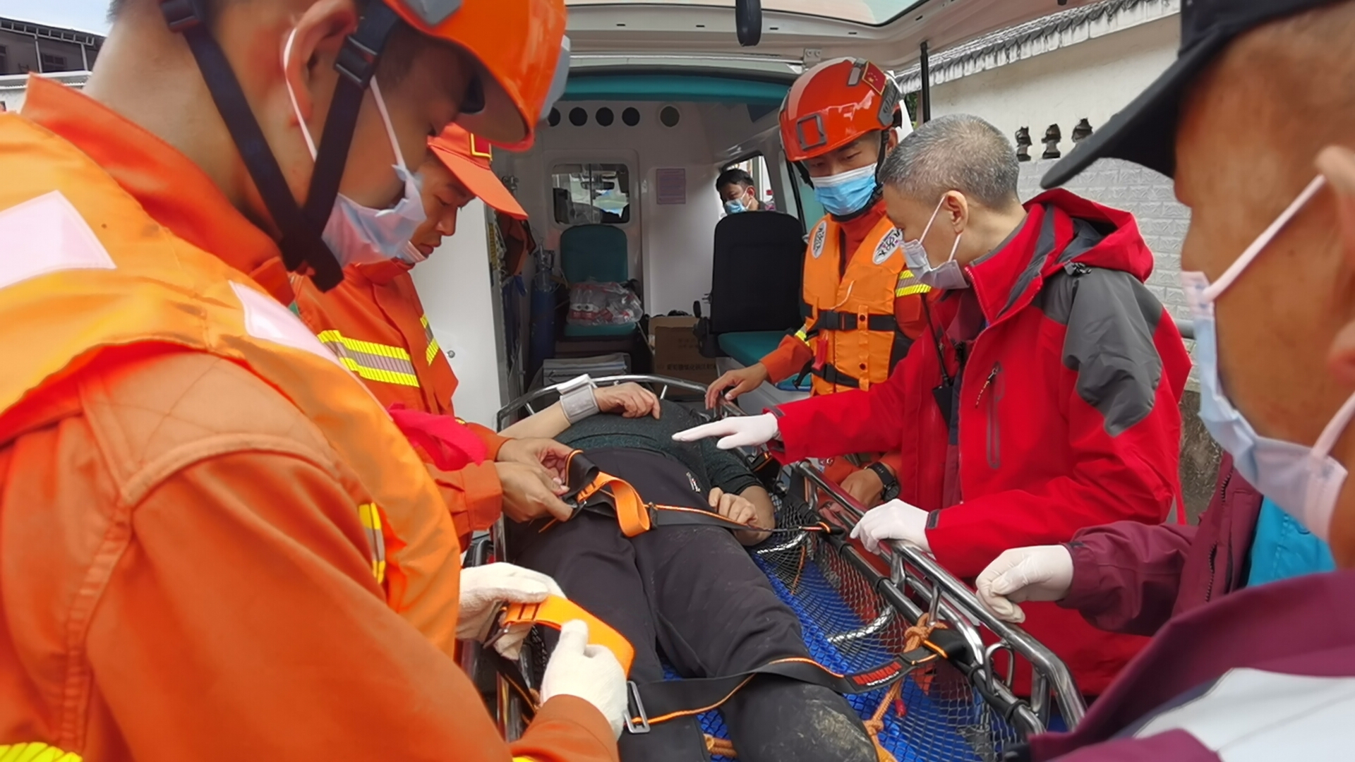 救援队以得妥乡镇卫生院为基点,深入周围受灾严重的村落,开展现场伤员检伤分类及救治工作。今日中午12时许后方再次与救援队取得联系,得知因道路毁损严重,交通仅剩以冲锋舟为载体的水路,消防官兵用橡皮艇从水路送出病人,送到水路接驳点得妥镇联合村隧道口救护车中进行医疗救援。