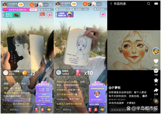 2018年,惠然在快手创建了专门发布绘画内容的快手小号,开始持续更新绘画作品。自那时起,惠然对于短视频的认识逐渐深入,为其如今通过短视频爆火打下了基础。