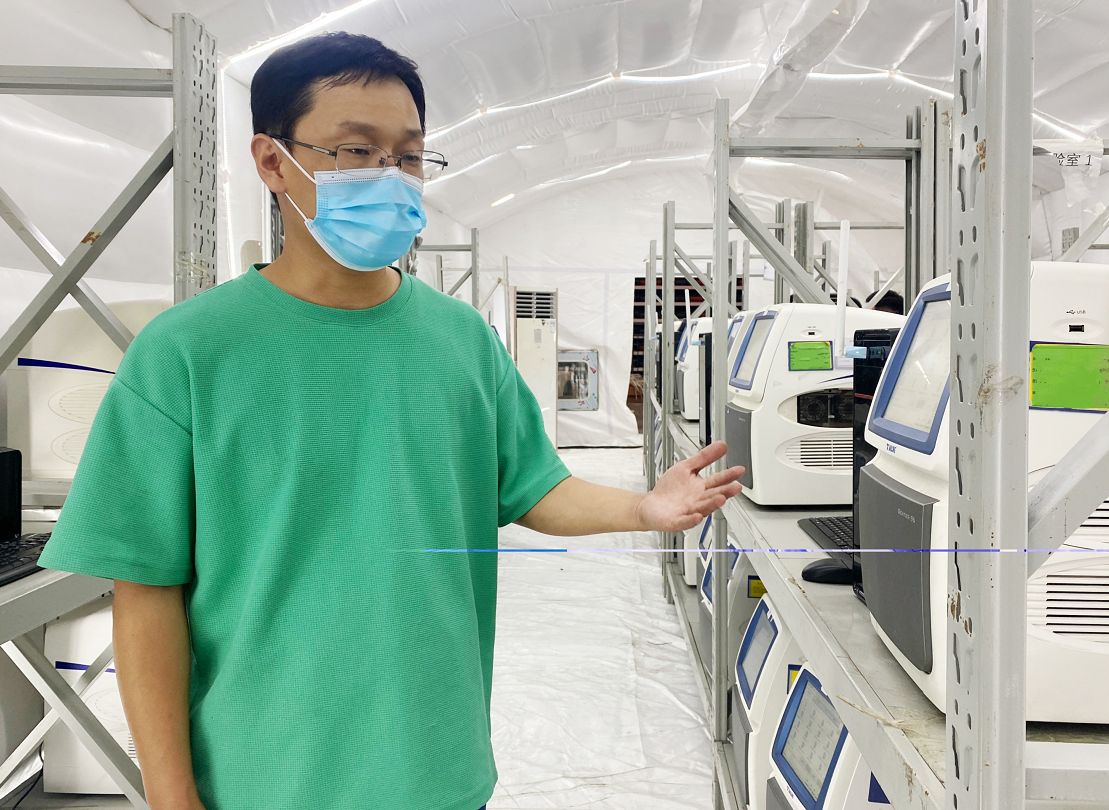 向下俯瞰,该实验室像几个并排连接的大棚,占地1200平米,共配置了180名实验室工作人员和200多台实验设备。实验室的运行由西安天博医学检验所的检测人员负责,他们刚从支援海南的任务中受紧急调派而来,“凤凰山体育公园综合体育馆空间条件、能源配给非常好,符合我们搭建实验室的相关要求。属地政府、场馆运营方的物资保障和协调配合工作也很到位,这为我们快速、顺利开舱做了坚强保障。”西安天博医学检验所现场负责人李浩男给予了此次搭建工作高度评价。