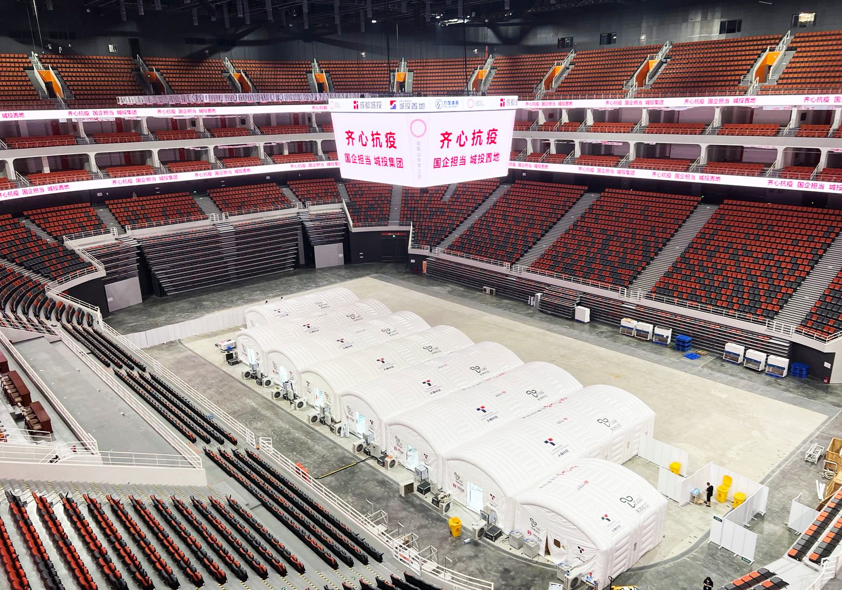 “按照相关工作要求,我们在9月5日11时46分接到《成都市金牛区新冠肺炎疫情防控指挥部关于征用凤凰山体育公园综合体育馆的函》后,立即部署安排搭建工作,从储备的抗疫志愿者中抽调了几十名员工参与搭建。”置地集团相关负责人介绍,置地集团作为成都城投集团所属国有企业,始终竭尽全力为全市疫情防控贡献力量,按照省、市防疫指挥部的统一部署,高度重视气膜方舱实验室建设的落地与保障,第一时间配合西安天博医学检验所有限公司快速梳理完善了现场保障条件,制定了全天候的保障方案,实现了所有实验物资、设施、设备按时进场,确保了9月5日晚8点起进行搭建安装,9月6日中午前调试完毕,当天下午即可投入使用。下一步,置地集团将配合金牛区政府相关部门,做好现场秩序维护,场馆内外保洁,水、电、新风系统供应,以及医疗废物垃圾处置等相关后勤保障。