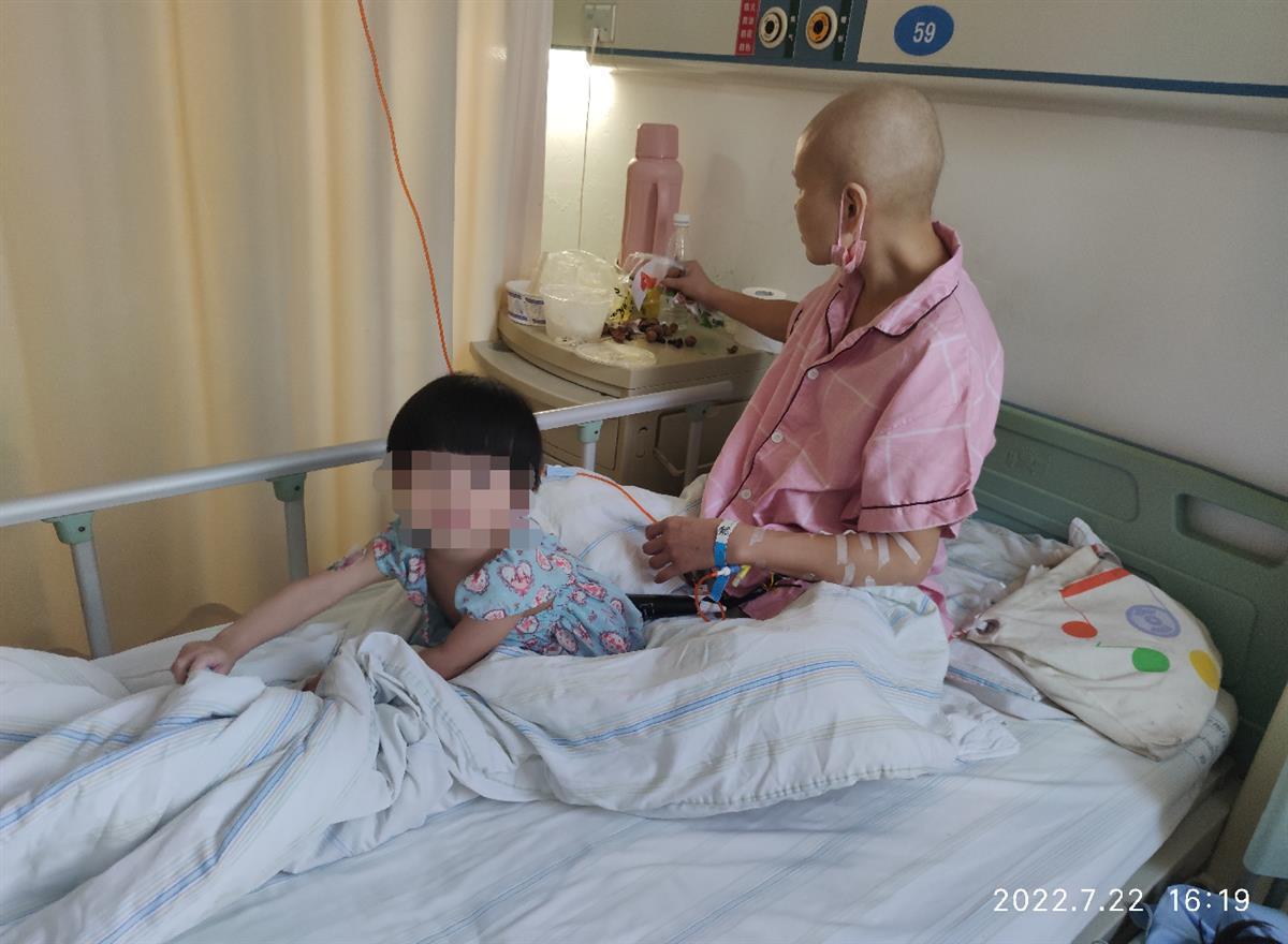 7月19日,周女士第一次来到湖北省肿瘤医院妇瘤科就诊。拿着入院单,她抱着女儿来到病房申请一起住院,当被护士告知这不符合相关规定时,她无助地哭了:“孩子没人管,我要是不能带着她一起,那我也没法住院了。”