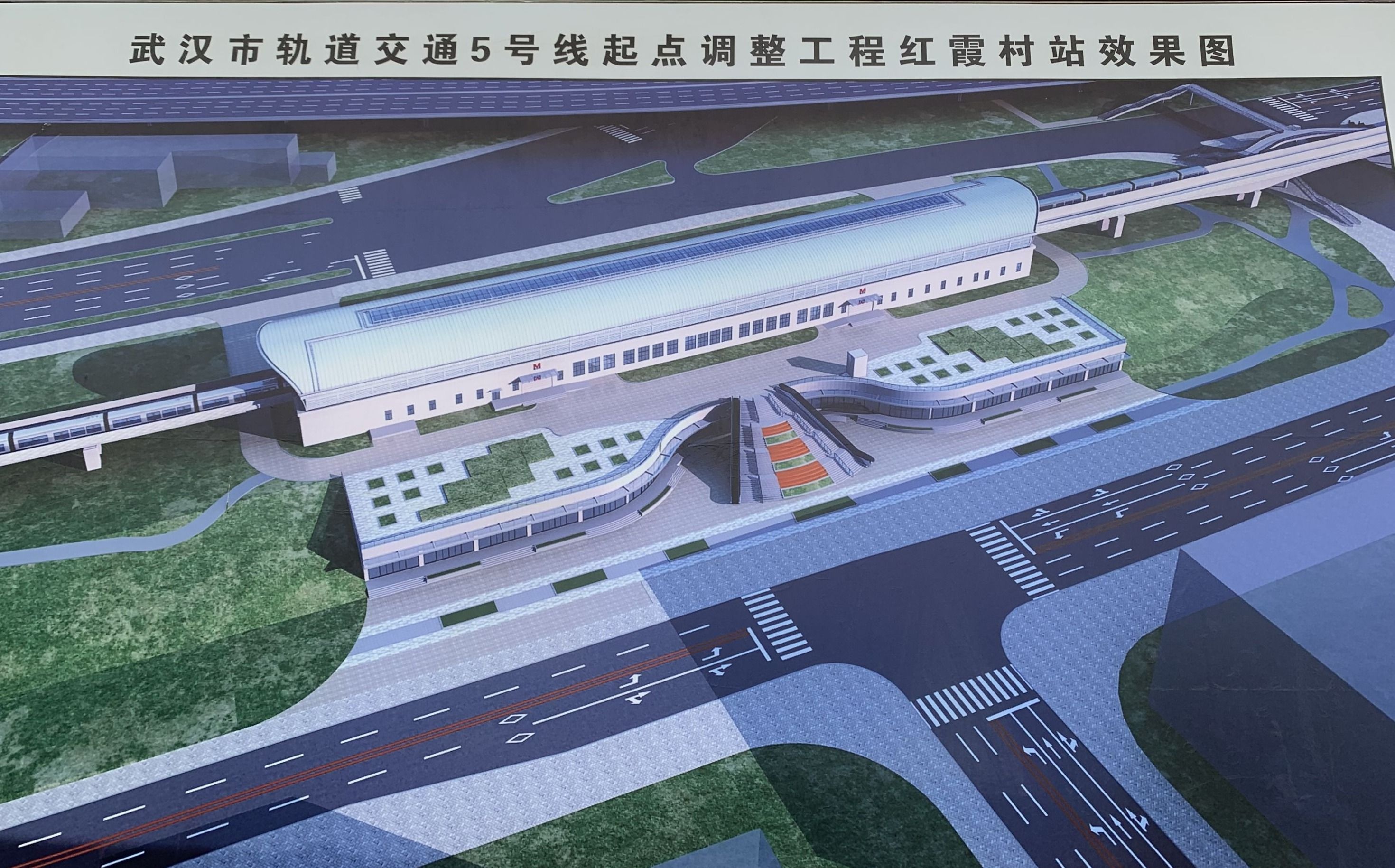 武汉地铁5号线二期起于红霞村站,经科技大学站与5号线起点中医药大学站相接。线路长约2.63公里,均为高架线路,共设2站2区间。线路包含折返线、红霞村站、红霞村站-科技大学站区间、科技大学站、科技大学站-终点区间。此次封顶的两个车站均为路侧高架二层侧式车站,其中一层为站厅层、二层为站台层。红霞村站位于黄家湖西路与黄家湖五街交叉口西侧绿地内,沿白沙洲大道南北向敷设。车站总长154.8米,总宽23.6米。共设置4个地面层出入口,其中两个位于白沙洲大道侧,另两个位于黄家湖西路侧。科技大学站位于黄家湖西路与黄家湖三街交叉口西侧绿地内,沿白沙洲大道南北向敷设。车站总长159.4米,总宽23米。出入口设置与红霞村站类同。(详情请点击→)