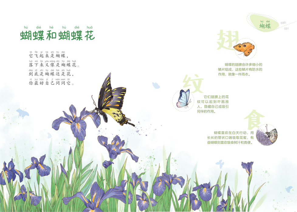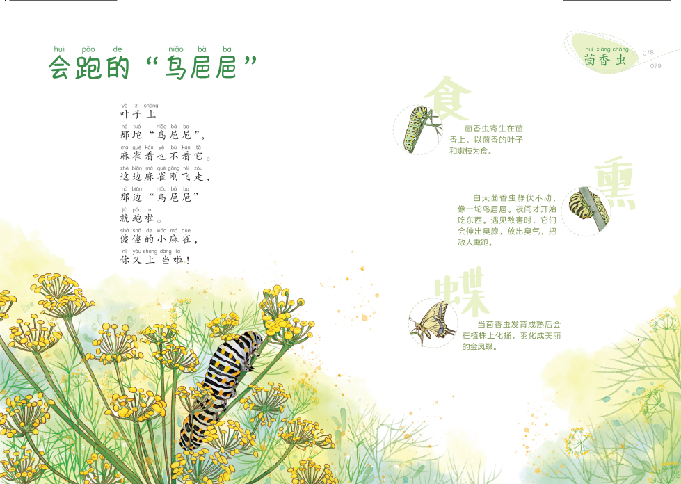 阅读这三本儿童诗集,小朋友们从中也同样可以“多识草木鸟兽之名”。因为这三本书也是关于花草、昆虫和动物的“知识小百科”。作者不仅为每一种花草、昆虫和动物写了一首童诗,还用简洁、精确和有趣的散文文笔,一一描述了对它们的外形、生长习性、生命特点的观察与认识。这些小科普知识,有的可能就来自作者自己小时候在田野上的观察与发现。
