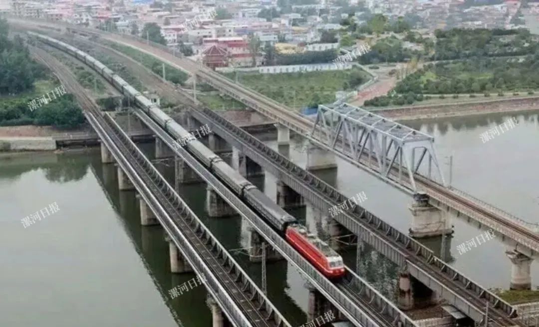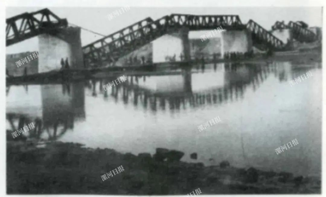 1947年12月,中国人民解放军四纵十旅破击平汉线,破毁的漯河沙河铁路大桥。该桥1903年由清政府组织修建,1906年建成通车。该桥自建成之日起就一直承载着连通南北铁路大动脉的重任。漯河区划后,于1990年至2013年,在原平汉铁路桥两侧分别修建了三座沙河大桥:京广铁路复线桥、漯宝铁路沙河桥(1990年)、漯阜铁路沙河桥(2013年)。