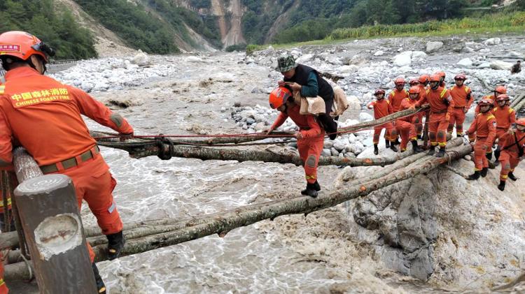 9月6日,海报新闻记者从四川省森林消防总队获悉,当天早上6时,由77人组成的甘孜州森林消防支队,在甘孜州泸定县磨西镇贡嘎布乡青岗坪村开展搜救。经过3小时的艰苦工作,当天上午9时,森林消防队员在徒步跋涉约两公里山路后,将5名伤员转送至由森林消防队员用几根木头临时架设的简易桥梁。这条几根木头组成的简易桥梁,成了青岗坪村村民们的救援生命线。