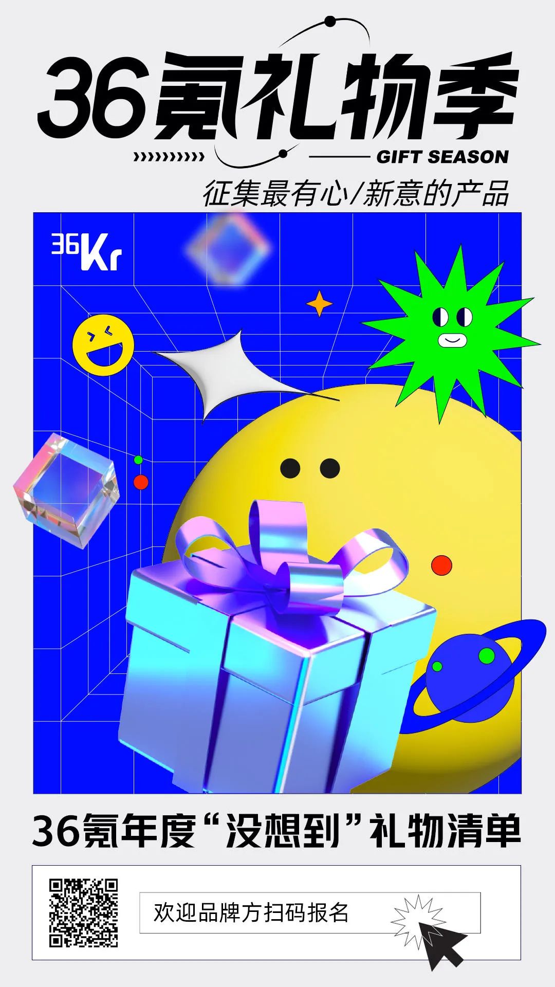 为了适应当下年轻人的购物和送礼需求,36氪准备推出一份2022 · 36氪年度“没想到”礼物清单。如果您是品牌方朋友,欢迎携带自家爆品/新品来报名参加。36氪将为每个产品在累计超770w+粉丝的36氪“双微”渠道进行曝光。