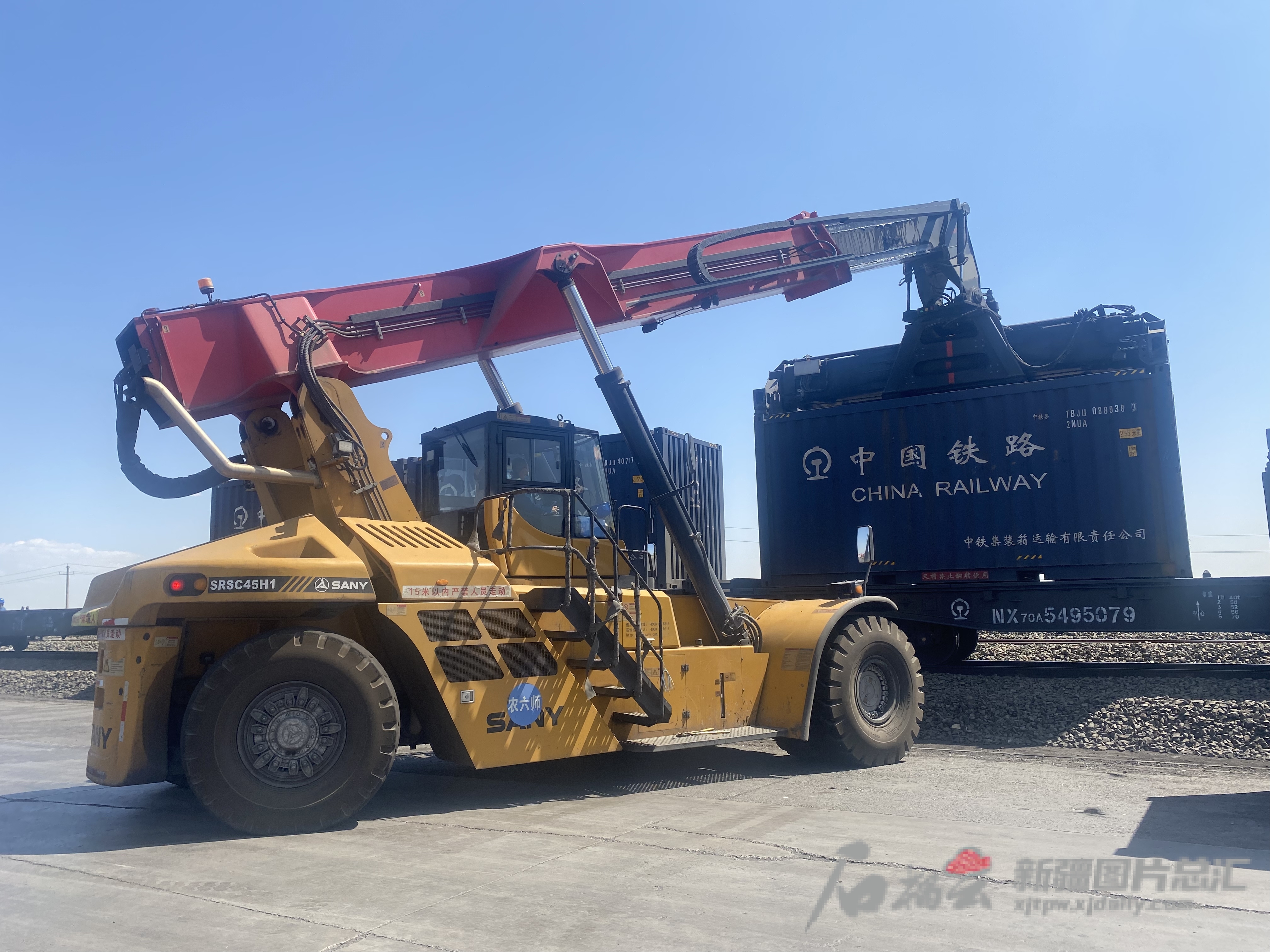 9月6日上午,乌将铁路甘泉堡站货场内,一列满载煤炭的敞顶箱列车到达后,两台正面吊快速将一只只敞顶箱吊装到接货的汽车上,运往附近的工业园区,为企业送去急需的电煤。