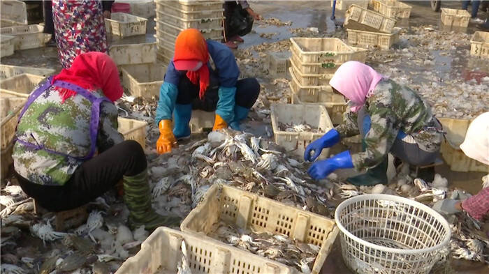 齐鲁网·闪电新闻9月6日讯 9月6日一早,在寿光市羊口镇中心渔港,随着渔船归来,一筐筐海鲜被抬上岸,码头上瞬间热闹起来,早已等候在岸上的收购商开始忙着和工人们一起将海鲜分拣装箱、称重、装车,准备将第一手海鲜运往市场。“早上不到7点,我们就靠岸了,这‘第一网’产量还说得过去。”渔船主马增长介绍,开海后,他主要在渤海莱州湾等距离羊口不远的近海海域作业,“第一网”产量有近两千公斤,捕获的有梭子蟹、鱿鱼、光鱼、皮皮虾,还有饲料鱼等。记者看到他一边忙着记录账单,一边联系进购蔬菜、煤炭等船上物资,准备再次出海。