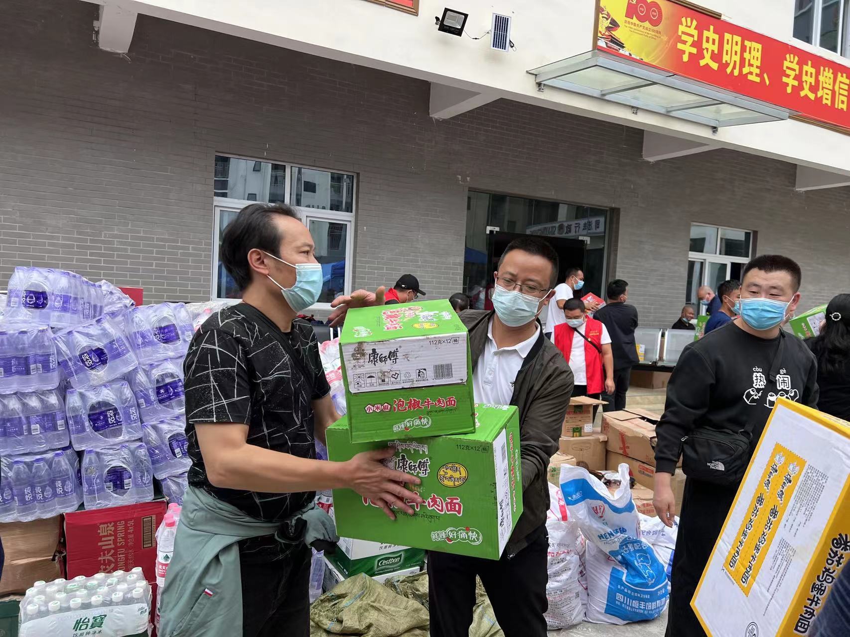 负责救灾物资转运的队员徐镭,全力协助受灾前线转运救灾物资,目前已协助转运帐篷375顶、折叠床1000余张、棉被1000余床,协助搭建救灾帐篷200余顶,协助安置受灾群众1000余人。