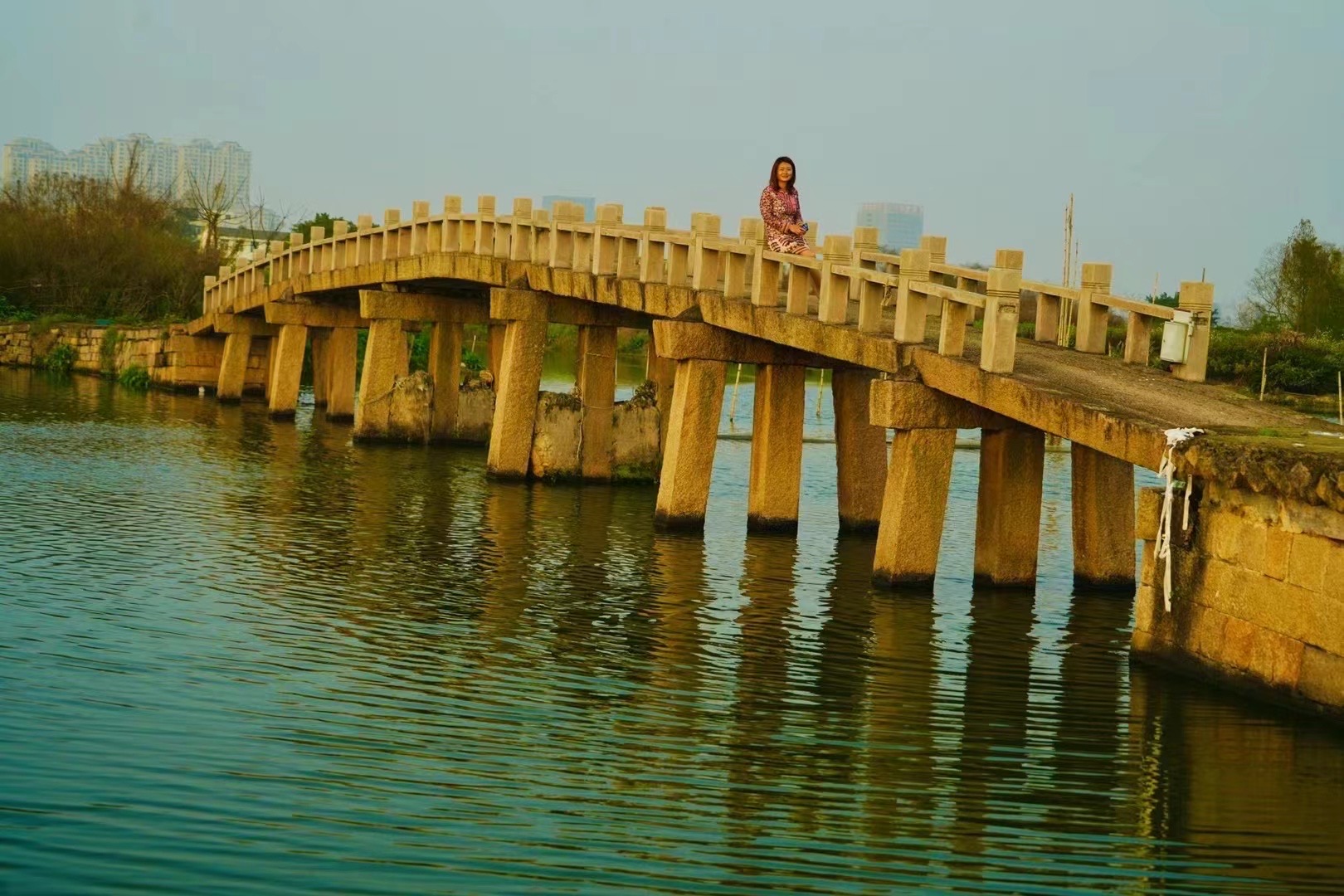 我喜欢落日余晖下的三垟大桥,闪闪发亮;