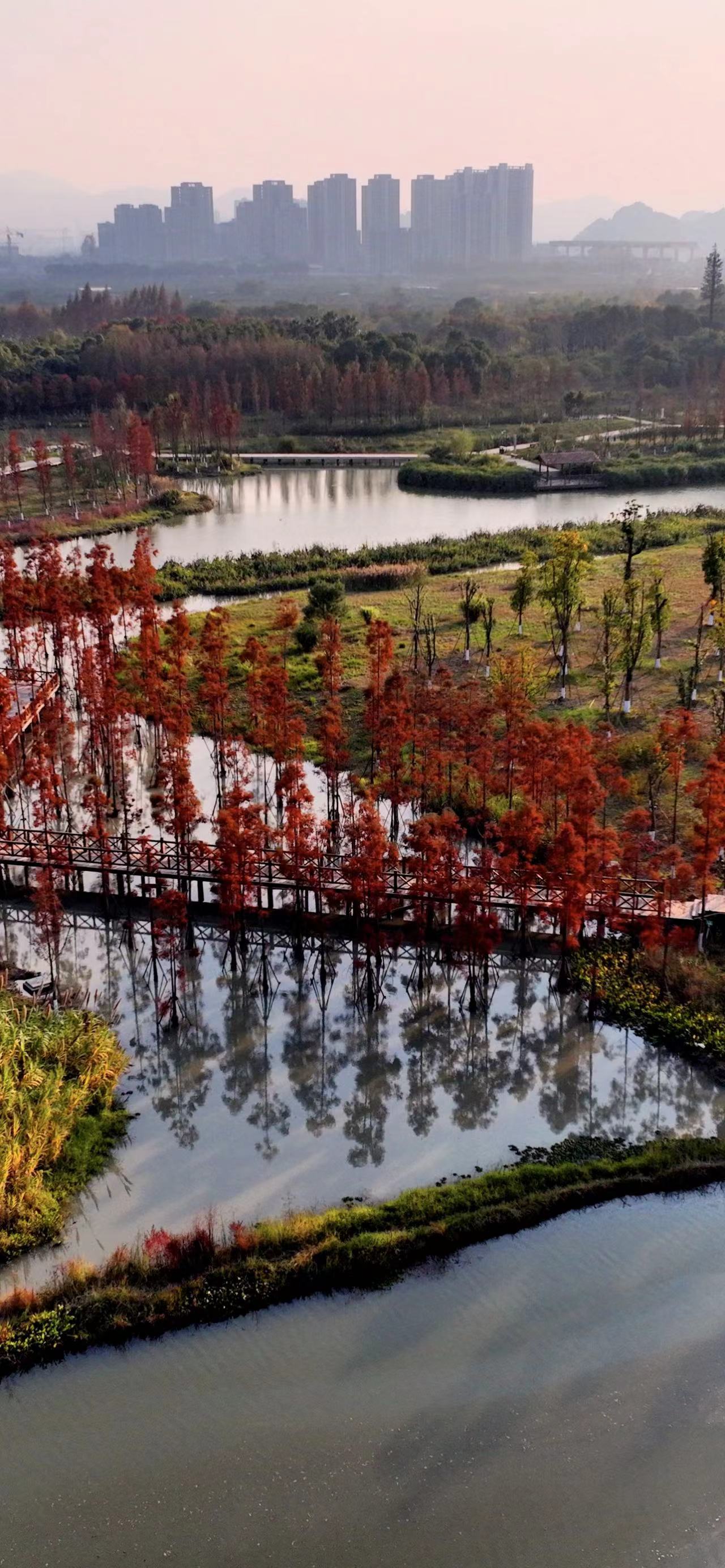 每到秋天,三垟湿地的色彩变得更加丰富起来,若是再冷些,那花溪花岛上的大片水杉就会红了,来打卡的市民络绎不绝。