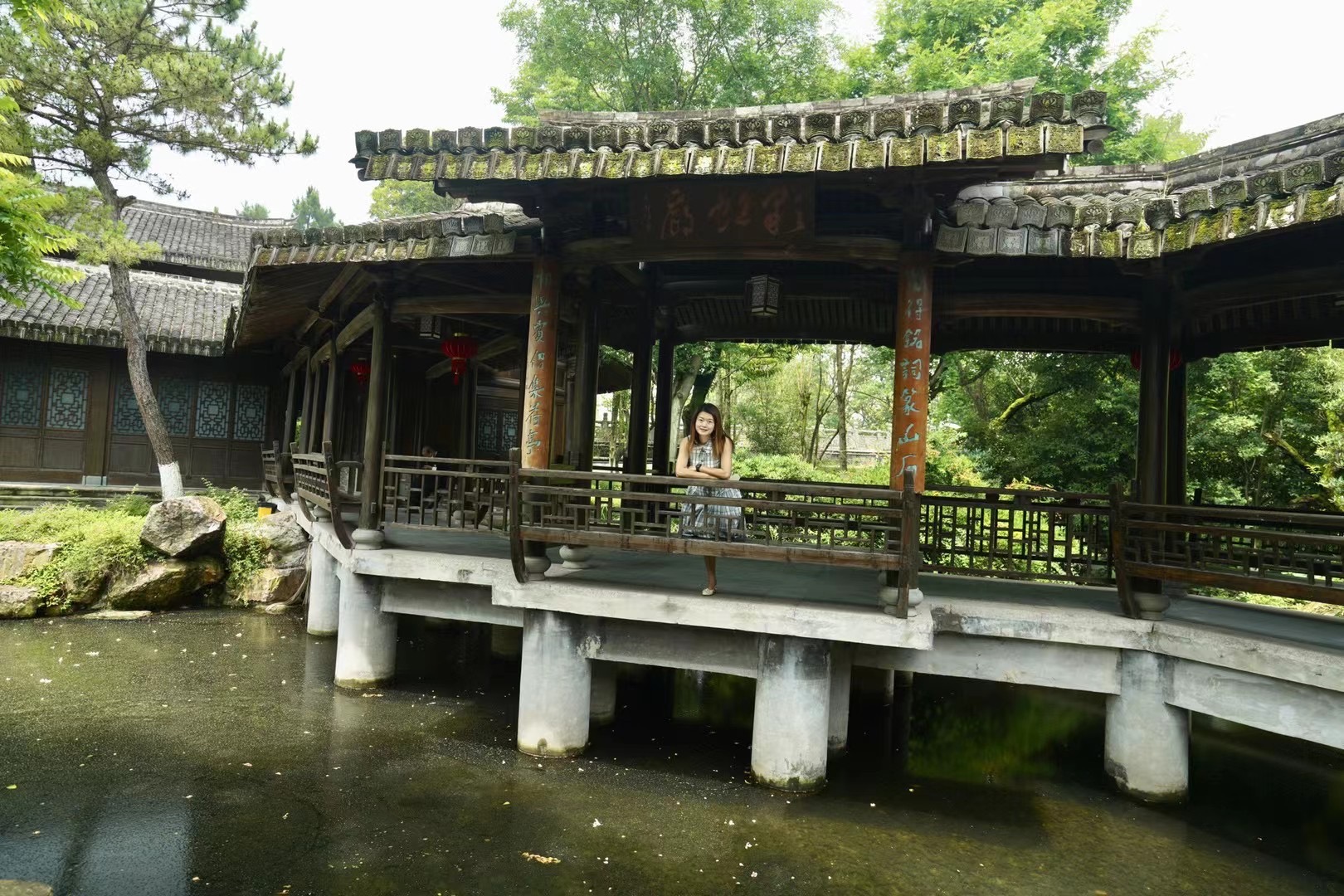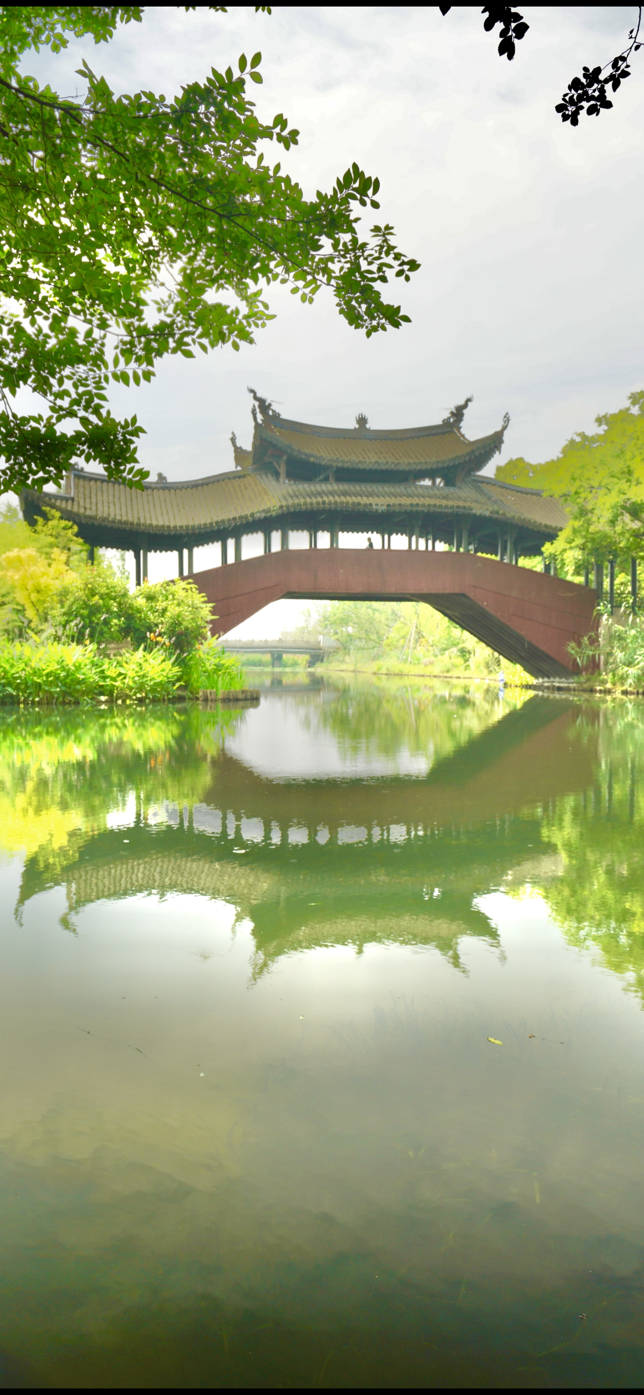 我想带你到琼华廊桥走走,你瞧这桥与倒影一块,好美。琼华廊桥,古典雅致又端庄大方,紧挨着榕园,在南怀瑾书院的南边,像彩虹一样横跨在水面上。琼华廊桥是泰顺廊桥传人董直机师傅主墨建造,完全依照泰顺廊桥传统工艺建造。
