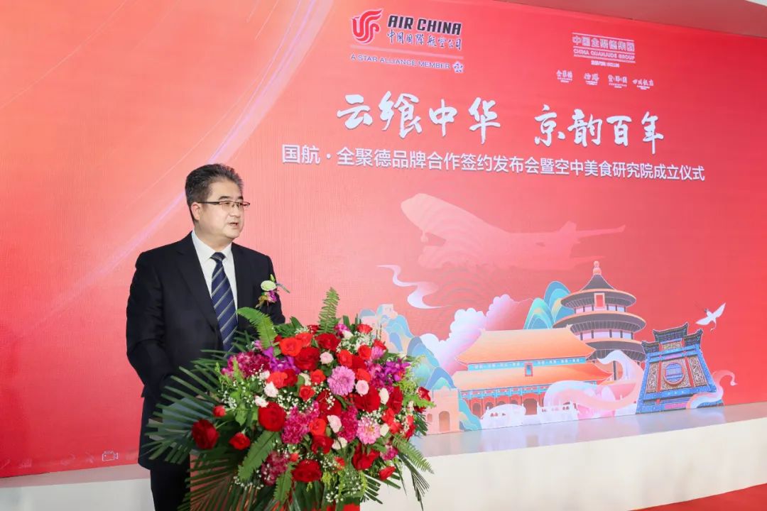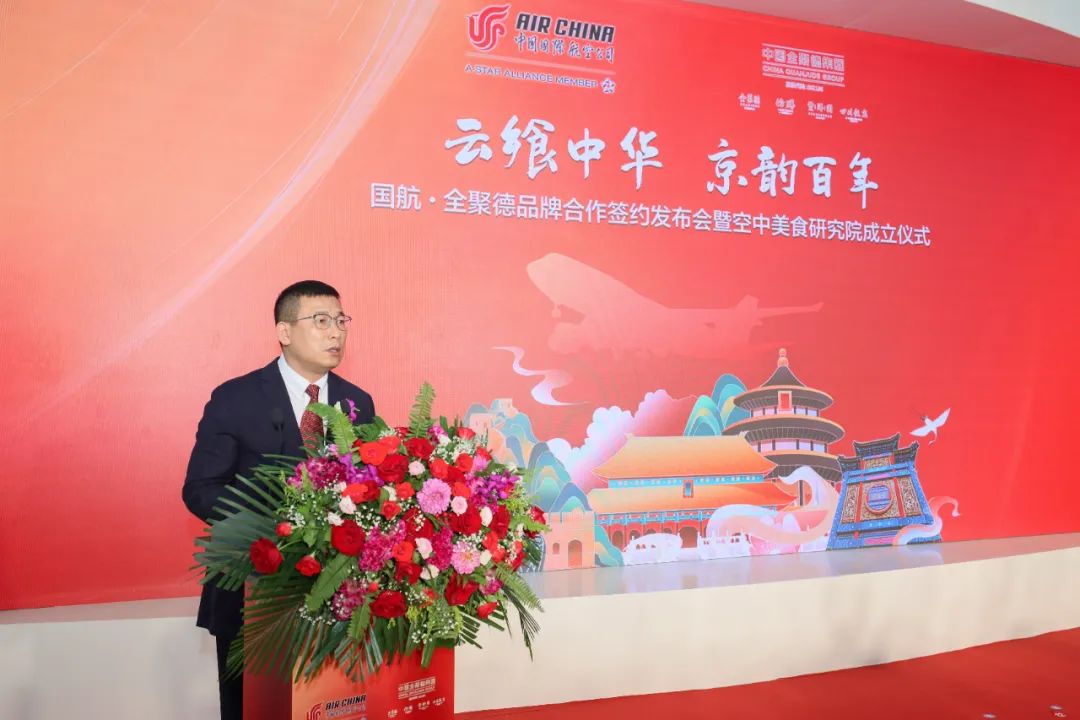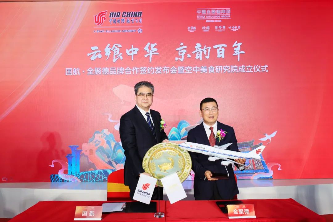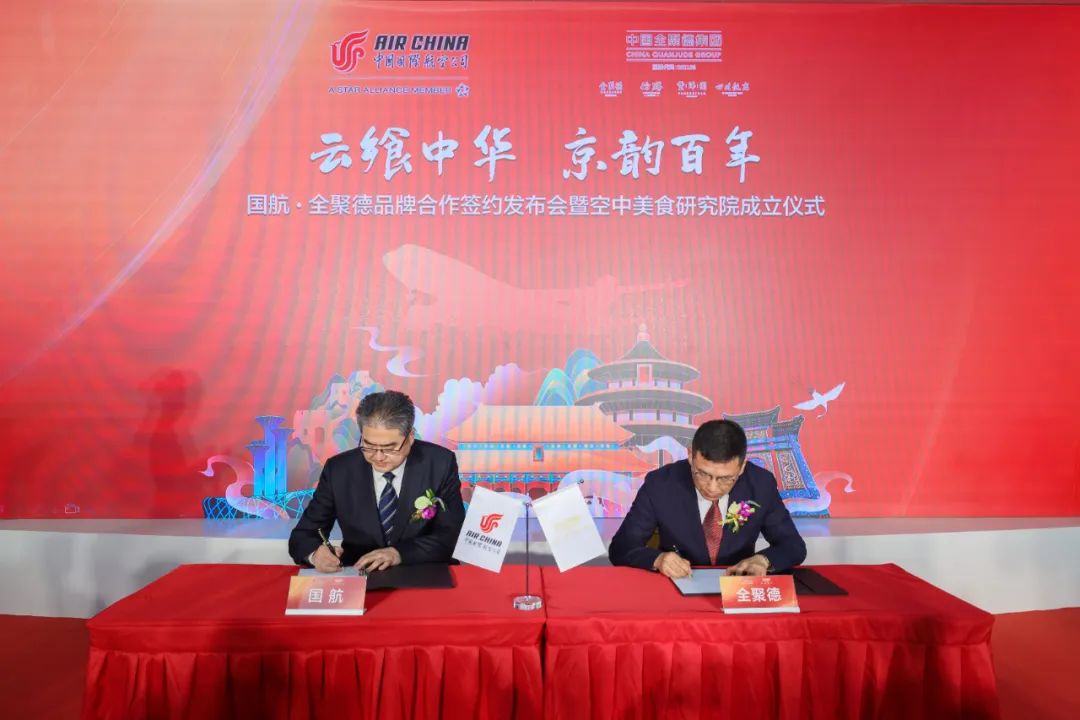 9月6日,中国国际航空股份有限公司(以下简称“国航”)携手中国全聚德(集团)股份有限公司(以下简称“全聚德”)在北京国航世纪大厦举办“云飨中华 京韵百年”品牌合作签约发布会暨空中美食研究院成立仪式。此次签约标志着双方将汇聚资源、相互赋能,联合打造国航专属餐食产品。